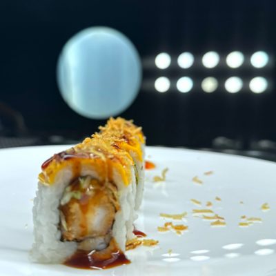 Interno: gambero in tempura e avocado; esterno: philadelphia. Allergeni: crostacei,...